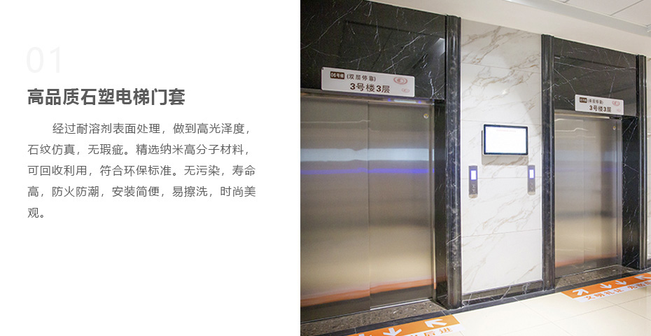 山东皓月装饰材料有限公司是一家专做电梯门套的研发、生产、销售、安装为一体的企业。本公司生产的电梯门套具有:无污染、无辐射、防火、防水、易清洁、安装快、省时、时尚美观等特点。